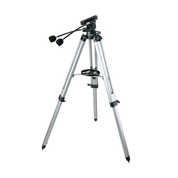Resistente montura altazimutal con robusto trípode de aluminio, con bandeja para accesorios y cables flexibles de movimiento lento, para ajustes finos. Incluye Tornillo de acoplamiento de 1/4"x20. Soporta de forma segura hasta 6 Kg de peso.