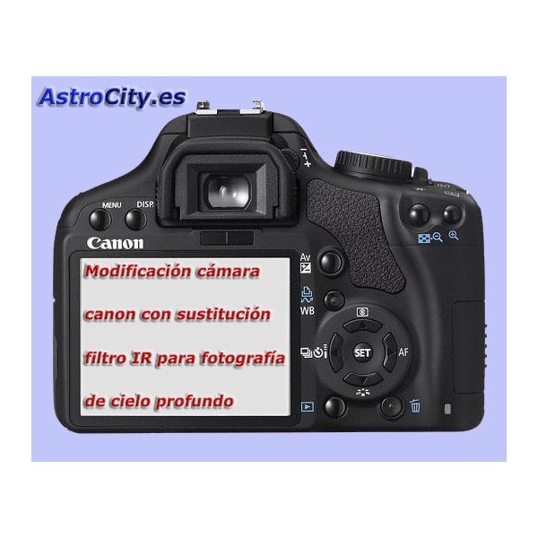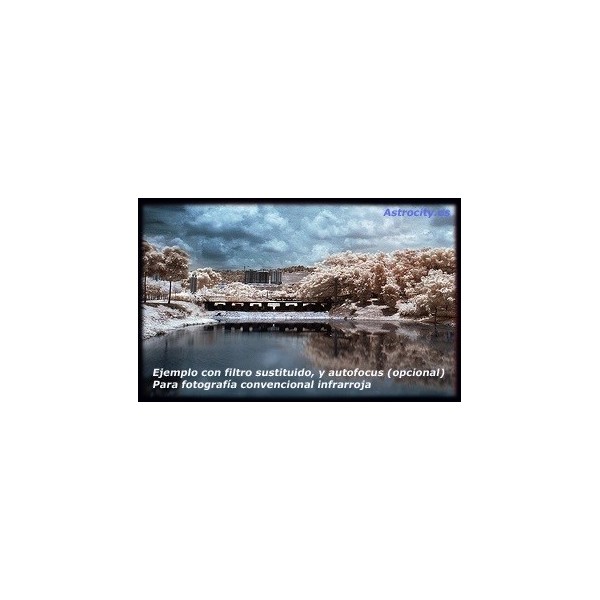 NOTA: La retirada del filtro IR conlleva la pequeño error en el autofocus y balance de blancos. Esto no es ningún problema para astrofotografía, pero sí para fotografía convencional, por lo que si usted quiere seguir utilizando su cámara para fotografía convencional, recomendamos, no solo retirar el filtro IR sino sustituirlo por un filtro específico que corrija el autofocus. (servicio también disponible en astrocity)