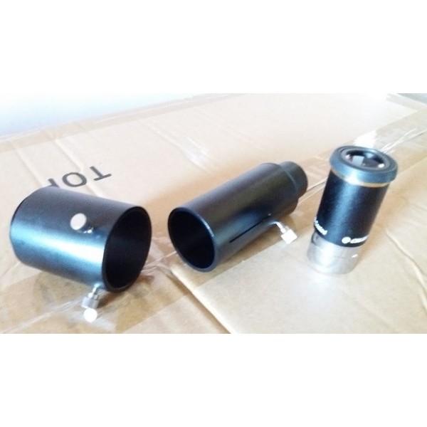 El adaptador para fotografía de proyección variable de Skywatcher, permite intercalar oculares diversos entre cámara y telescopio, posibilitando fotografiar con aumento y garantizando, gracias a su capacidad extensible, la posiblidad realizar proyección focal variable y conseguir foco. Entrada para portaoculares de 1,25", salida a camara con rosca para anilla T (no incluida)