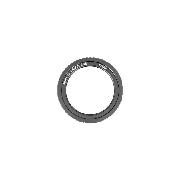 Esta anilla T con métrica M48 se acopla por un lado a las cámaras reflex de objetivos intercambiables estandar (poner en comentarios si es canon o nikon tu cámara) y por el otro sale a métrica M48 que permite acoplar accesorios de gran campo como reductores de focal o correctores ópticos por ejemplo.