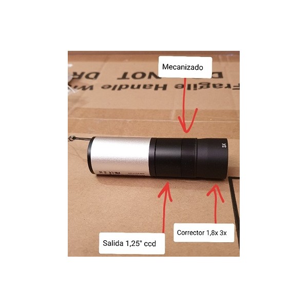 Hemos hecho este mecanizado para adaptar los correctores de los binoculares 1,85x y 3x para adaptarse a 1,25". Para poder usar estos como barlow para foto con CCD, para barlow para oculares, o para barlow para reflex etc... es decir aprovecha tus correctores para cualquier producto de 1,25" especiales para foto planetaria