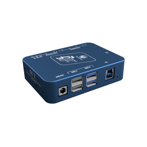 En uno de los laterales tiene la entrada USB que conectaremos al ordenador, que es un USB 3.1. A través de este puerto USB controlaremos nuestra Pocket Powerbox Advance Gen2 de Pegasus a través de su aplicación y a través de ASCOM. También tiene 2 puertos USB 2.0 y 2 puertos USB 3.0.