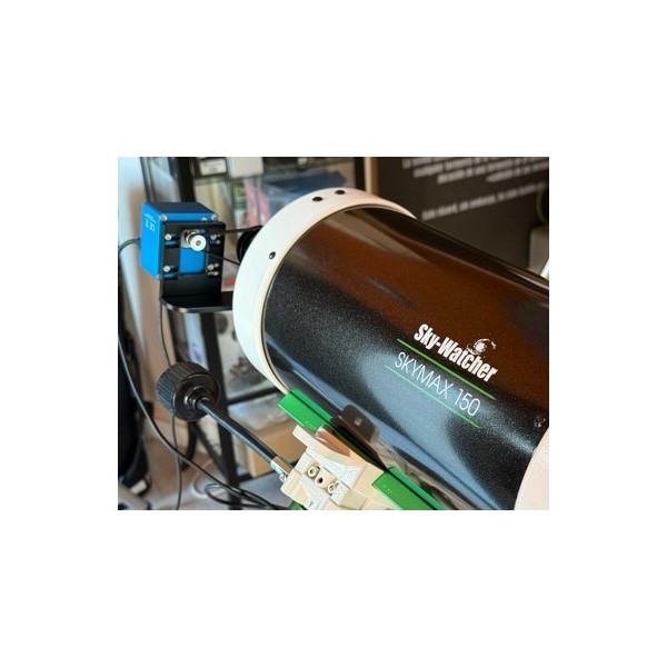 El enfocador Pegasus FocusCube Zero para Mak150 y Mak180 está diseñado en alta calidad, con electrónica moderna y proporciona un control de enfoque preciso desde un PC. El enfocador incluye un motor paso a paso, y la electrónica, las pletinas, correa y poleas. El motor paso a paso está encerrado en una caja de tamaño compacto.