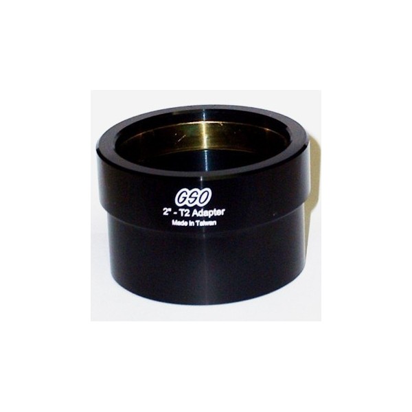 Accesorio multi propósito. Por ejemplo para salida de prismas lunt etc.. entra a T2 hembra y sale a 2" hembra con anilla de cobre. Construido en aluminio anodizado. De la marca GSO característica por dar inmejorable calidad/precio.