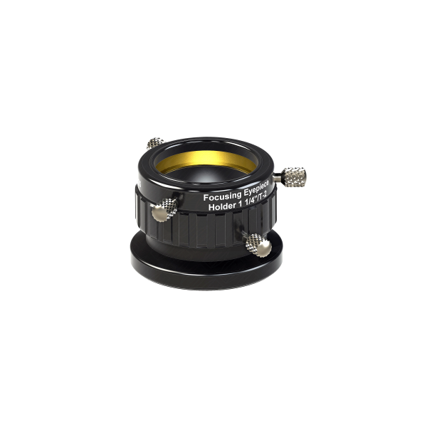 Adaptador de T2 hembra y salida a portaocular de 1,25" para entrada de oculares. Permite adaptar ruedas portafiltros de 9 posiciones Orion por ejemplo, y otras configuraciones. Con cierre para oculares de 1,25".