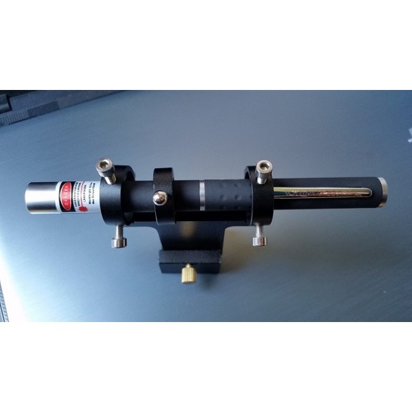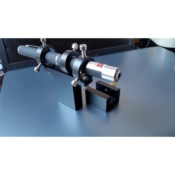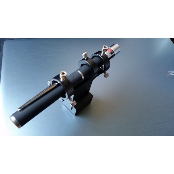 Soporte para puntero laser con base de fijación universal y posibilidad de entrada directa a tubos Breser. Incorpora una anilla de pulsación prolongada para fijar el haz de luz y tornillos graduables que permiten fijar distintos diametros de puntero (de 8 a 20mm) Sustituye al buscador tradicional mediante un haz de luz que fija a tiempo real la posición del objeto.