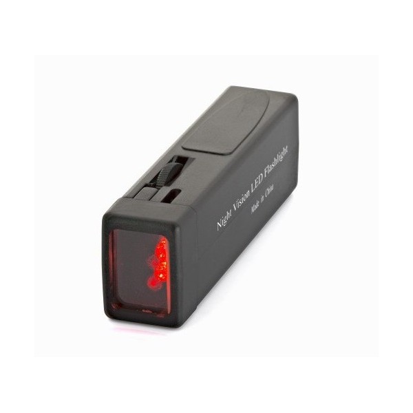 Linterna regulable de luz roja para visión nocturna en actividades de astronomía. La linterna tiene dos LED rojos de intensidad regulable mediante un potenciómetro que permite adaptar la luz a las necesidades de cada tarea. Equipada con un colgador para facilitar su manejo. Funciona con pilas (no incluidas)