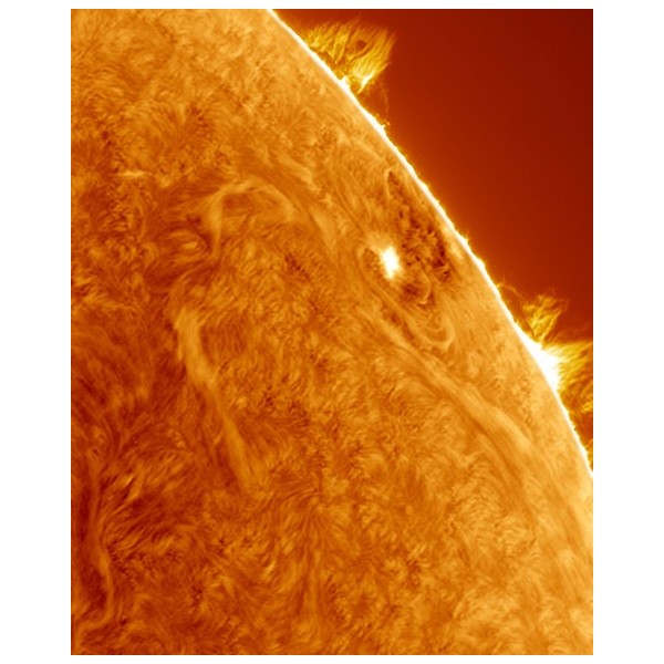 Seguramente no comprarías un telescopio solar H-Alpha de este diámetro, pero ¿alquilarlo por bajo precio una mañana estando como estamos en máximos solares? podrás ver la cromosfera en detalle. Espículas, protuberancias, manchas, fulguraciones y si tienes suerte explosiones tipo X. Cada 11 años el sol nos sorprende, ahora es el mejor momento para disfrutarlo.
