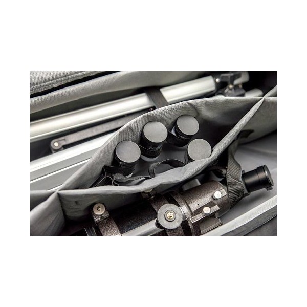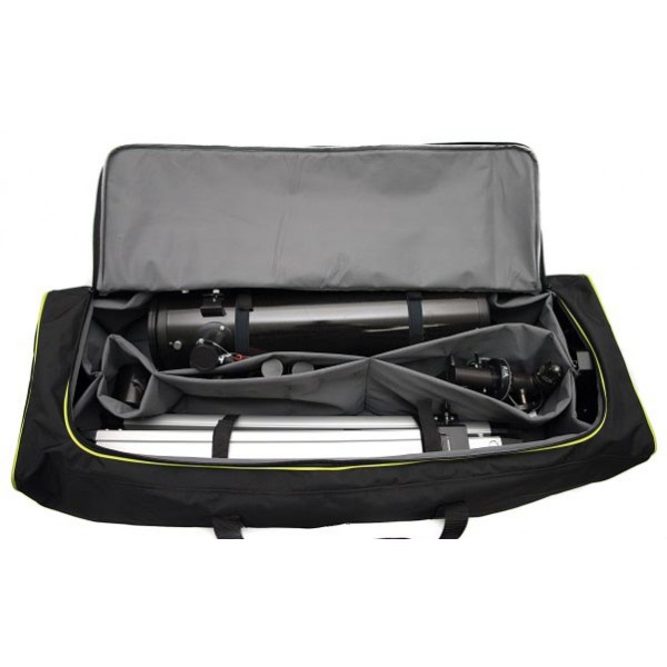 Reflectores newton de 76mm hasta 130mm, incluyendo el resto del telescopio completo. La goma foam y los acabados aseguran una durabilidad muy grande y resistencia a roces y golpes. Es cláramente la meor bolsa de transporte que conocemos para telescopios dde gama iniciación y gama media.