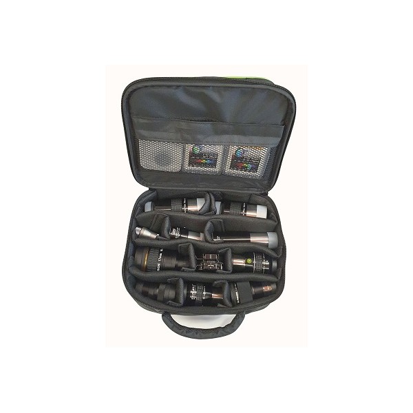 La mejor opción para guardar tus accesorios. Celebramos 15 años en Astrocity, y lanzamos esta bolsa serigrafiada de accesorios. Calidad PRO. Permite ajustar las separaciones para tener tus accesorios protegidos. Barlows, oculares, cámaras, separadas por acolchado de alta densidad. También malla para filtros. Oferta de lanzamiento!