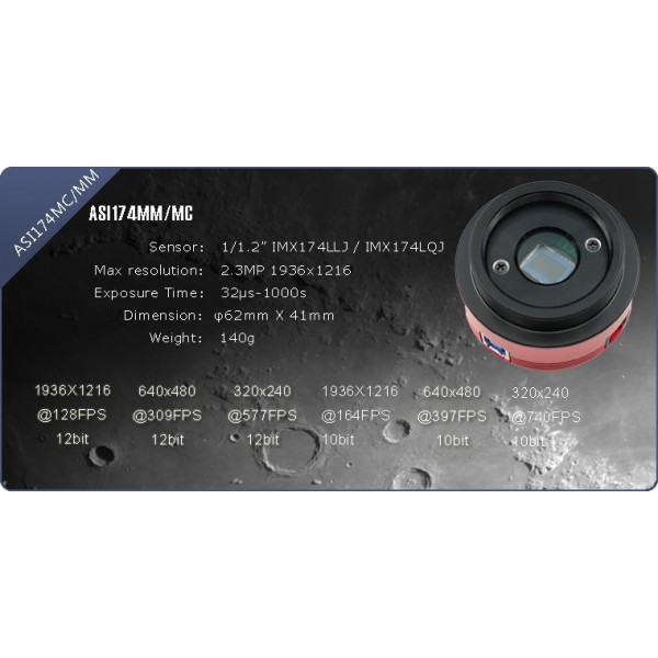 La mejor cámara del mercado para foto lunar y solar con filtro, y excelenbte para planetaria, ultra rápida a más de 500fps A usb 3.0 y ROI. Cámara monocroma, altísima sensibilidad y bajo ruido. Con entradas re aire al sensor para ráida aclimatación de este. Es tan sensible que podría hacerse cielo profundo. Ideal para foto del sistema solar en HD. EN STOCK!