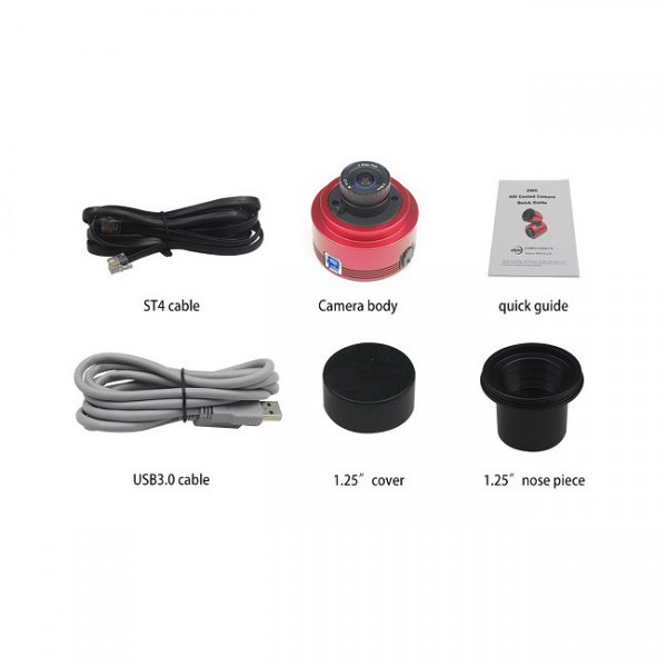 La ASI 290-MC ZWO es una cámara color con puerto USB 3.0 de alta velocidad. Muy sensible de gran eficiencia cuántica y alta velocidad de captura. Cuenta con puerto ST4 estándar para el guiado. Incluye cables y adaptador M42 a 1,25''.