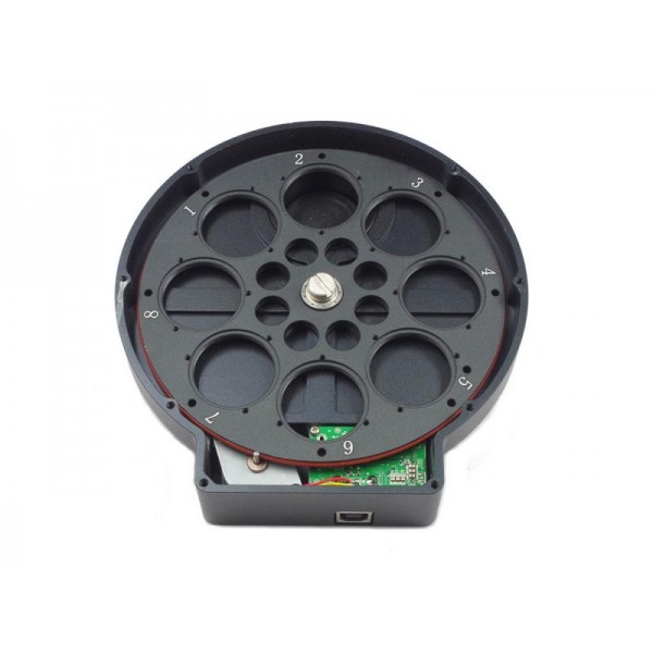 La rueda ZWO EFW 8 es perfecta para astrofotografia ya que facilita la creación de imágenes LRGB con cámaras ASI evitando el viñeteo. Gracias a su bajo consumo se alimenta mediante puerto USB. Se maneja a través del controlador ASCOM.