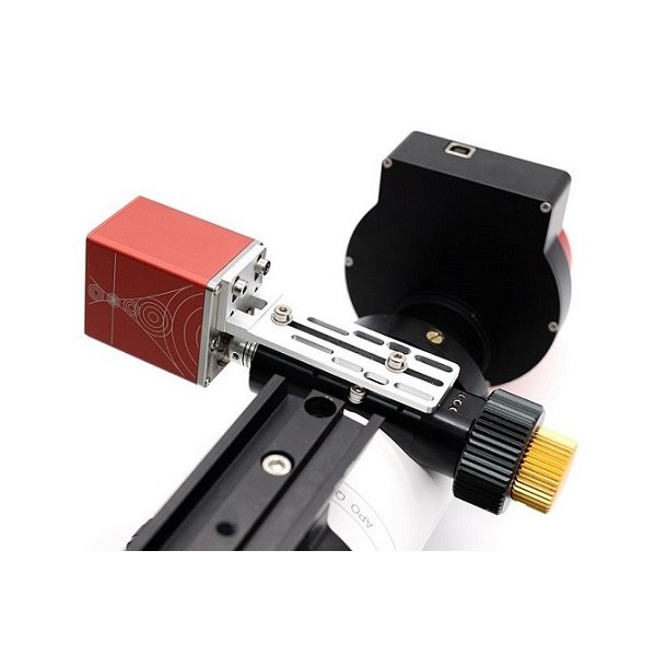 Su soporte de aluminio en forma de L se acopla facilmente a la mayoría de los enfocadores de los diversos tubos astrógrafos, incluidos los Crayford Dual Speed.