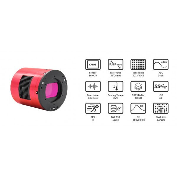 El ruido de lectura ultra-bajo de 1,1e y el brillo de amperaje cero hacen de esta cámara una innovación en el campo de las cámaras de astronomía OSC de fotograma completo refrigeradas.