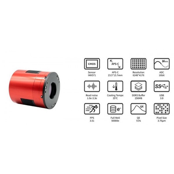 - Sensor: CMOS IMX571 Retroiluminado Sony