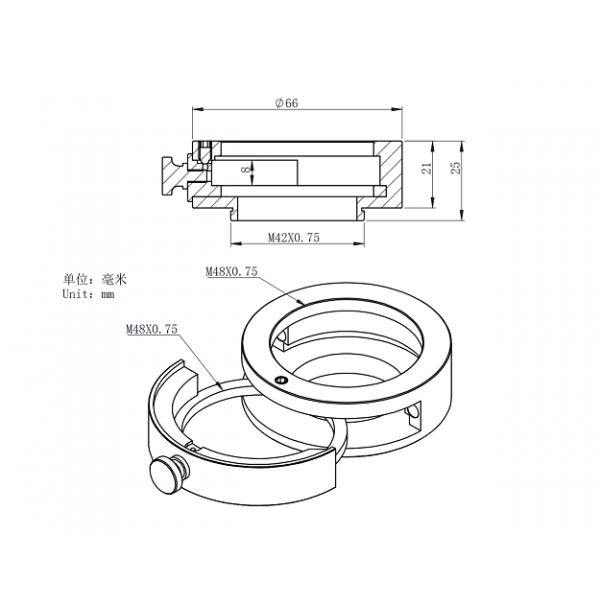 Incluye rosca macho M42 del lado de la cámara y rosca hembra M48, tanto en el extremo del filtro como en el lado del telescopio.