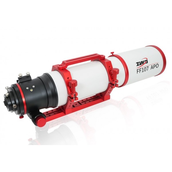 El ZWO FF107 APO es un telescopio refractor astrógrafo cuadruplete con un poderoso diseño óptico de campo plano que le ahorrará el aplanador de campo. Elimina el problema de calcular la distancia del aplanador (metalback) y meter anillas espaciadoras para conseguir la medida y tener el campo plano, como sucede con los tripletes comunes.
