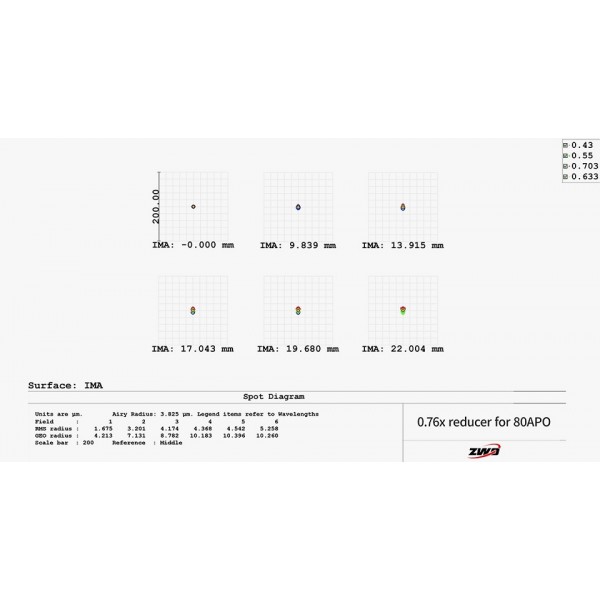Nuevo reductor y aplanador de 0.76x para los refractores FF80 APO de ZWO. Tiene un factor de reducción de 0.76x, lo que le baja al telescopio de sus f/7,5 nativos a una relación focal de f/5,7 y una distancia focal de 456mm. Esto permite menos tiempo total de integración o igual tiempo de exposición con mucha mas información, ademas de corregir el campo de un sensor FullFrame y abarcar mucho mas campo aparente.
