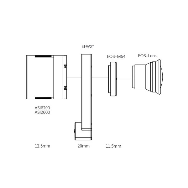 Con este adaptador podrás poner objetivos Canon en la rueda portafiltros de 2” de ZWO. Al quitar de la cámara la pletina de corrección de tilt y atornillar la cámara directamente en la rueda, con este adaptador tendrás la distancia correcta del objetivo.