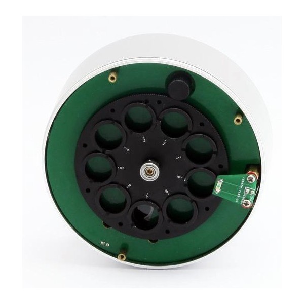 La MiniCAM5 con filtros L, R, G, B, Black, Ha, OIII, SII y Hb es perfecta para fotografia de cielo profundo en alta resolucion. Su rueda portafiltros motorizada de 9 posiciones permite cambiar de filtro facilmente. Gracias a sus filtros de banda estrecha podrás fotografiar incluso desde ciudad. Completo set de filtros, también de banda estrecha y negro. Eficiencia cuantica 74%