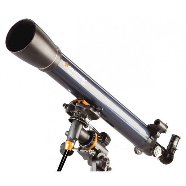 El telescopio AstroMaster 90EQ de Celestron es un refractor acromático de 90 milímetros de apertura y 1000 mm de distancia focal, lo que da como resultado una relación focal de f/11, que elimina por completo cualquier resto de aberración cromática típica de los refractores acromáticos más rápidos, además puesto que sus lentes van fijadas en su celda, no necesita colimación ni ningún otro tipo de mantenimiento del usuario, por lo que siempre tendrás tu telescopio en perfectas condiciones para observar, y con estrellas puntuales en todo el campo de visión de los dos oculares incluidos de 10 mm (100 aumentos) y 20mm (50 aumentos).