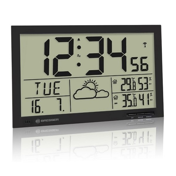 Esta estación meteorológica es perfecta para saber el tiempo que hacer fuera de casa. Su pantalla de gran tamaño y calidad te mostrará la hora en tamaño grande y fecha, la temperatura y humedad de dentro de casa y la temperatura y humedad del exterior.