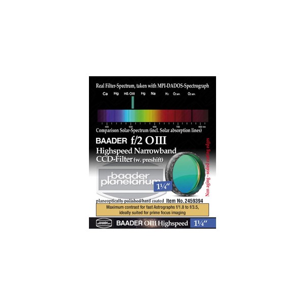 Filtro High-Speed OIII montado sobre barrilete de bajo perfil LPFC de 31,7 mm (1,25") Destinado a fotografía de nebulosas con emisión OIII y observación de cielo profundo. Especialmente indicados para astrofotografia con ópticas muy rápidas como las utilizadas por sistemas como Rasa, Hyperstar, etc.
