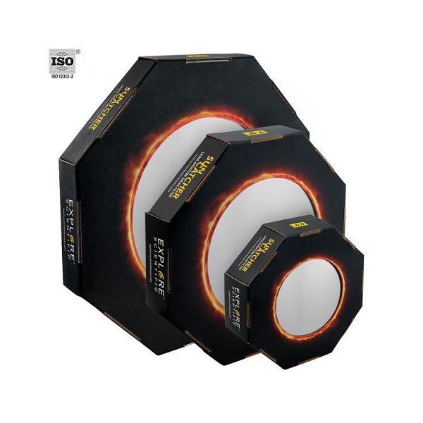 Se adapta fácilmente al diámetro requerido dentro de su horquilla (100/177mm) y es de fácil y rápido montaje. Equipa tu telescopio de manera sencilla con un filtro solar seguro y observa los movimientos de las manchas solares, el tránsito de los planetas, los eclipses, etc. Valido para Mak 127, refractor 120, newtons 150, SCT 6”, etc. Filtro 100% seguro. Clasificación ISO12312-2