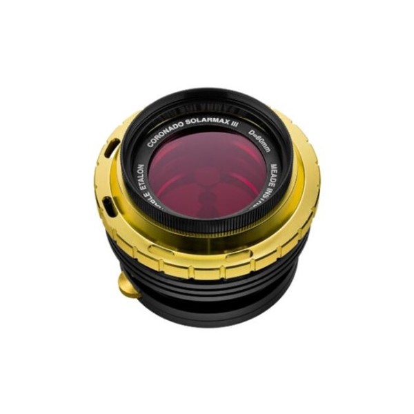 El filtro solar Coronado SolarMax III de 60mm es un filtro que se coloca en el parasol del telescopio para convertirlo en un telescopio solar. Siempre tiene que ir en combinación del filtro de bloqueo trasero, que se pone en el portaocular y es una diagonal que bloquea el sol.