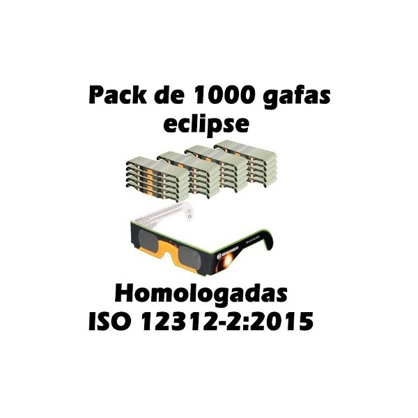 Este pack incluye 1000 gafas solares de eclipse, todas ellas con la certificación oficial UNE-EN ISO 12312-2:2015.