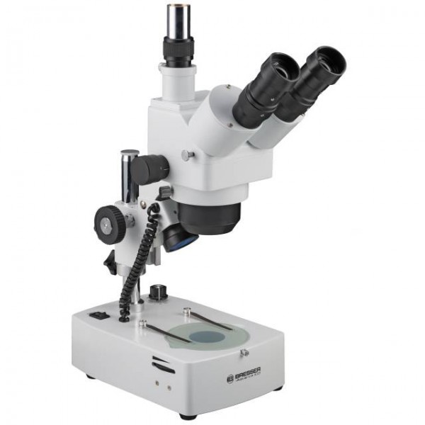 La combinación entre un objetivo zoom Estéreo (1x-4x), dos pares de de oculares de alto grado y amplio campo (10x y 20x) y una lente auxiliar adicional 2x permiten a esta increíble gama un aumento de 10x a 160x de primera con excelentes cualidades ópticas. La cabeza triocular con su ajuste de altura permite observaciones de artículos de mayor envergadura, tales como piedras grandes o gruesas placas de circuito. Además de poder ver el objeto con ambos ojos, el usuario puede conectar una cámara o un PC ocular a la cabeza del microscopio triocular al mismo tiempo.