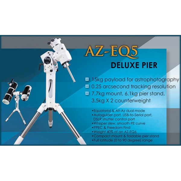 Sin duda tras el éxito de la AZ-EQ6 de skywatcher, esta AZEQ5 se presenta como una alternativa seria a la clásica EQ6PRO, pero con bastantes ventajas con respecto a este y prácticamente la misma capacidad de carga.