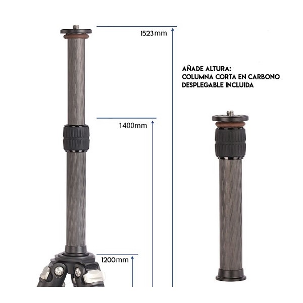 Como el resto de los tripodes de la marca Leofoto serie LS es un conjunto de alta gama fabricado con carbono 10x (10 capas Toray) y aluminio aeronautico 7075.