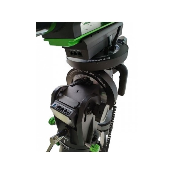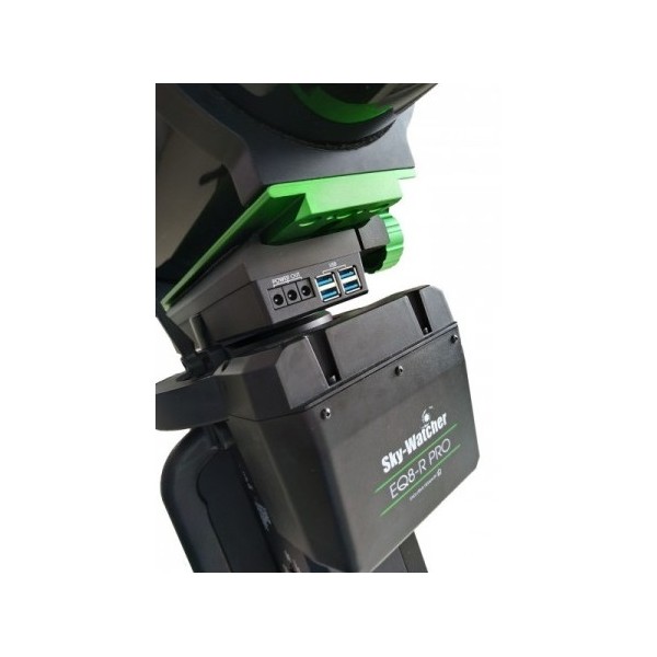 La Nueva versión EQ8-R satisface todas las necesidades de conectividad que se pueden plantear en la actualidad, implementando una amplia variedad de conectores de los más utilizados en astronomía y electrónica. Incorpora: 4 puertos USB 3.0. con alimentación, puertos RJ 4, 6 y 8 pines, 3 entradas de alimentación auxiliar. Manejo desde la APP Synscan pro por WIFI