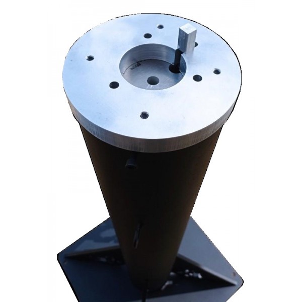 Como remate de la parte superior el tubo lleva una placa de aluminio a medida según la montura (consultar las opciones disponibles y mencionar que modelo de montura se quiere fijar antes de confirmar el pedido). La placa rota sobre la columna para facilitar la orientación.