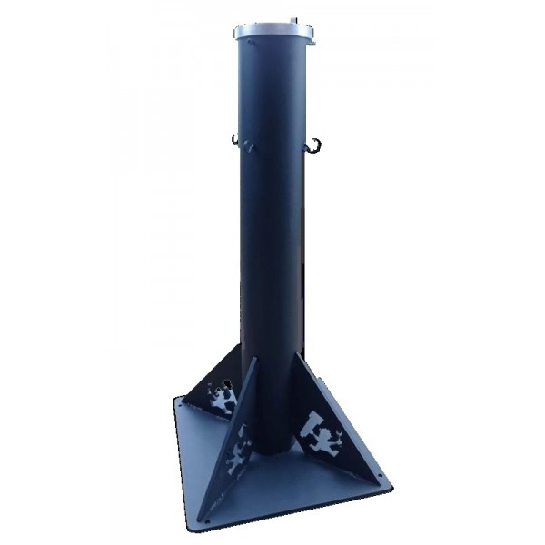 El tubo va soldado a la placa base y reforzado mediante 4 pletinas rigidizadoras que garantizan un robusto soporte de gran resistencia, con una perfecta estabilidad y libre de vibraciones.