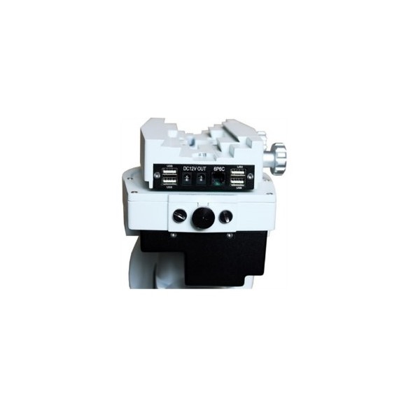 La CEM60 aguanta los equipos para astrofotografía de manera estable y sin vibraciones. La alineación con el polo celeste es muy fácil con este diseño, ya que el eje de declinación no obstruye el buscador de polos en ninguna posición. Dispone también de un hub usb alimentado y alimentación de 12V en la propia mordaza de la montura.