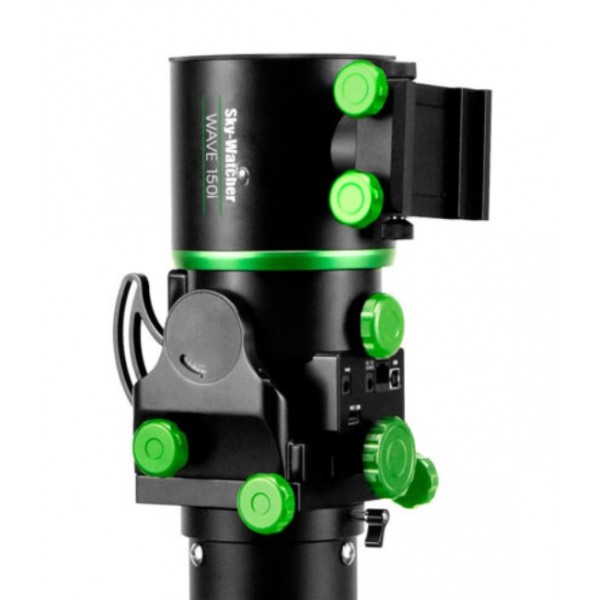 El cabezal de la montura trae incorporado wifi y Bluetooth, por lo que podremos controlarla inalámbricamente con nuestro móvil, pc o tablet, además que se le puede conectar el mando Synscan V3 actual si estamos acostumbrados a usarlo (el mando no viene con la montura)