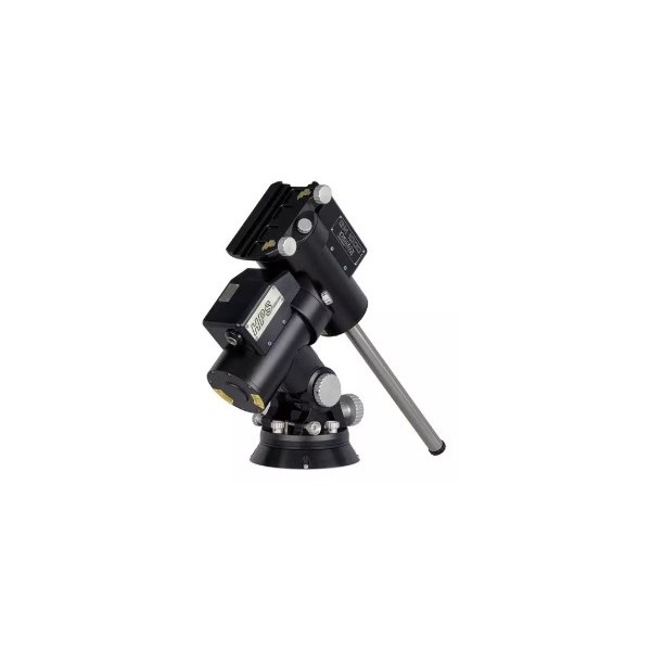 El equipo se entrega con un completo conjunto de accesorios, que incluye la unidad de control (el mando), motores, cables de conexión, una barra de contrapeso, y una funda protectora. También incorpora adaptadores estándar para pletinas y un adaptador específico para montar en trípodes o columnas, junto con un soporte tipo Losmandy.