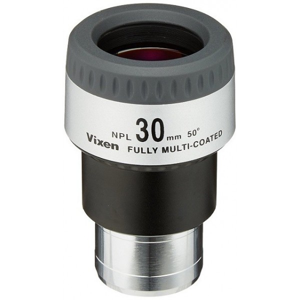 Ocular Vixen NPL de 30mm de focal y 1,25" de fabricación japonesa con excelente relación calidad precio y bajo cromatismo. Gracias a su diseño óptico Plössl de 2 grupos y 4 elementos ofrece imagenes excelentes en cuanto a color y contraste. Muy comodo gracias a su relieve ocular de 24 mm y su ojera de goma retractil. Grandes prestaciones a un precio muy asequible.
