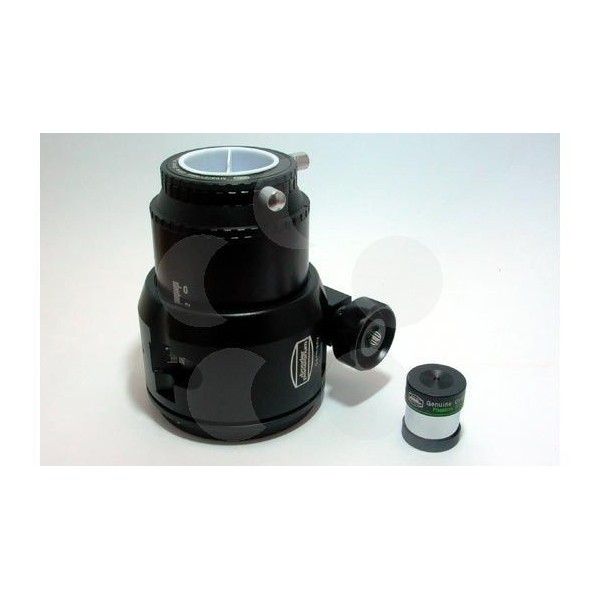 Portaoculares de 3" para telescopios de todo tipo. Longitud de foco de 40 mm. Salida roscada de 3" yM68. Con reductor de 2" a 1 1/4" incluido. Sistema de enfoque micrométrico, con reductor. Nonio de precisión, brilla en la oscuridad para poder ver mejor la distancia de enfoque.