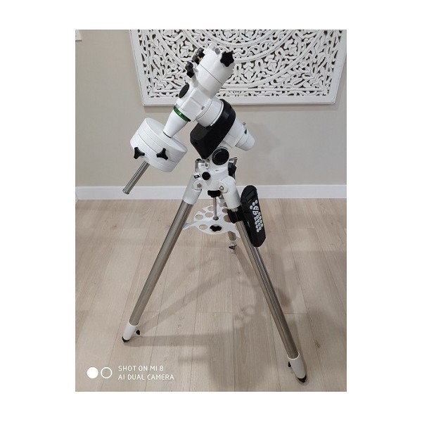 Montura ecuatorial alemana Skywatcher NEQ-5 con kit GOTO instalado. Acumula menos de 10 horas de uso y aún se encuentra en garantía del fabricante. Incluye:Todos los cables y conexiones necesarias para disponer del software SynScan, introscopio (buscador de la polar) para una puesta en estación precisa, maletín de transporte y dos pesas de 5 Kg.