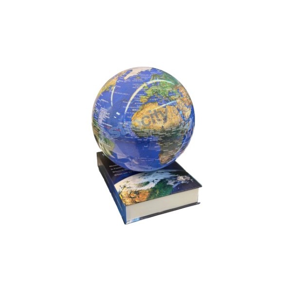 - Lámpara de levitación magnética que reproduce fielmente el planeta Tierra con nombres de países, mares y océanos.