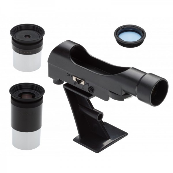 Equipado con un amplia gama de accesorios para empezar a disfrutar desde la primera puesta en servicio. Buscador 6x30, ocular Kellner de 25 mm, filtro solar y adaptador de 2" a 1,25".