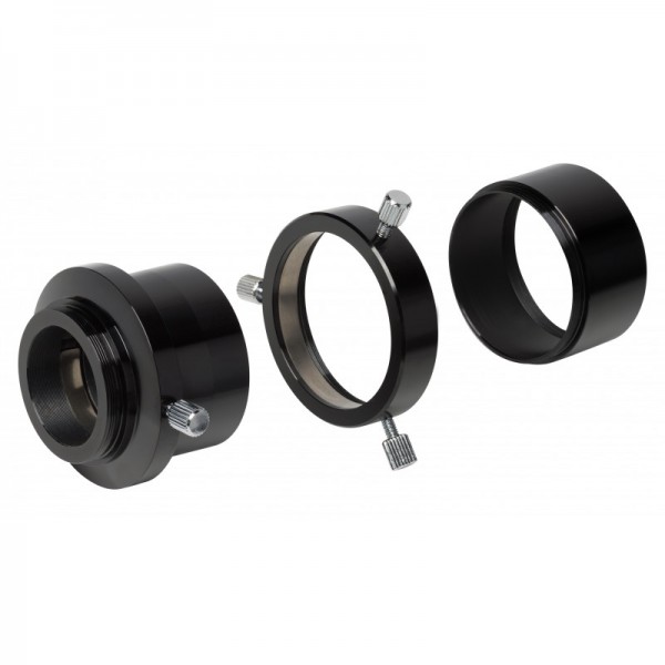 Incorpora porta-oculares de 2'' que permite el uso de oculares de 2'' ofreciendo un mayor campo de visión y gracias al adaptador de 2'' a 1,25'', incluido, también admite oculares de 1,25''