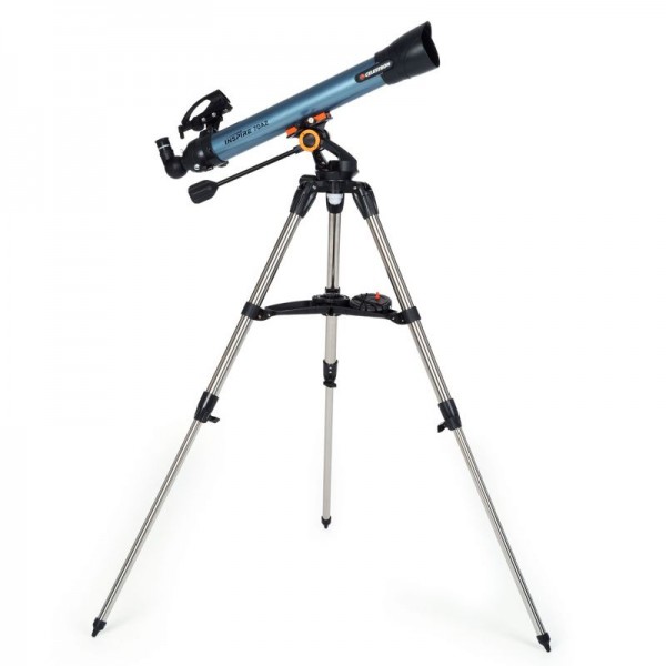 El Celestron Inspire 70AZ es un telescopio refractor doblete acromático con una montura Alta-azimutal (de movimiento hacia arriba y abajo, y de derecha a izquierda) perfecto para quien se quiere iniciar en esta afición para ir descubriendo poco a poco las constelaciones o los planetas y la Luna.