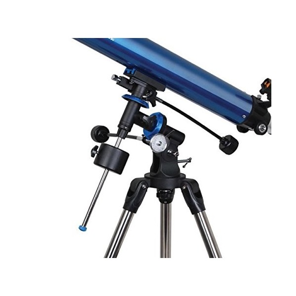 Trípode de acero, bandeja para trípode, montura EQ2, tubo refractor doblete acromático de la marca americana MEADE. Parasol, tres oculares, diagonal de 1,25" inversora y enfocador de cremallera.