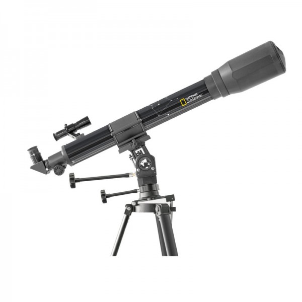 Refractor acromatico de National Geographic de 70 mm de diámetro y 900 mm de distancia focal con montura AZ-EQ, ambivalente para observaciones en modo altacimutal o ecuatorial. Incluye: Buscador 6x25, tres oculares de 4, 12 y 20 mm a 1,25", lente inversora 3x, espejo cenital y mapa estelar giratorio. Ideal para iniciación.